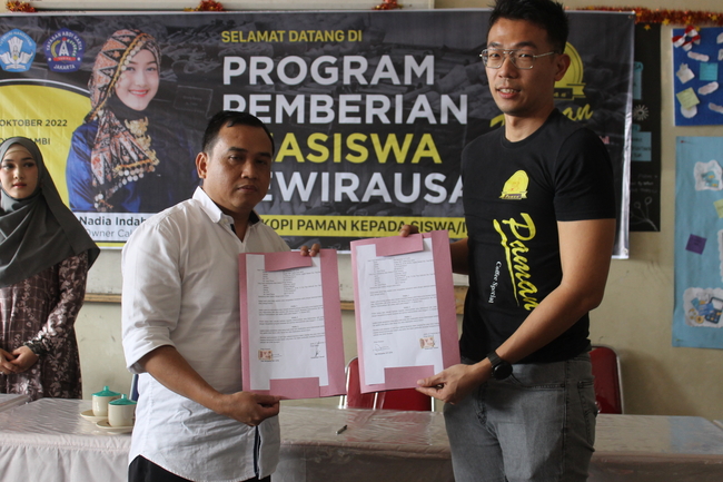 SMK Yadika Jambi melakukan kerjasama dengan KOPI PAMAN dalam kegiatan pemberian beasiswa kewirausahaan oleh "KOPI PAMAN" kepada siswa-siswi SMK Yadika Jambi yang terpilih. Penyerahan beasiswa tersebut diberikan langsung oleh pimpinan "KOPI-PAMAN". Pada kegiatan tersebut juga dilakukan seminar kewirausahaan yang disampaikan langsung oleh pelaku usaha yaitu dari "CAKE NADIA" dan juga dilakukan penandatanganan MoU kerjasama antara Kopi Paman dengan SMK Yadika Jambi. Selamat dan Sukses untuk siswa yang memperoleh beasiswa tersebut. Semoga Semakin lancar dan berkembang usaha nya serta memberikan motivasi berlipat untuk kegiatan belajar nya disekolah.