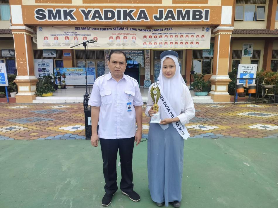 Sabtu 24 mei 2025 kemarin siswa SMK Yadika Jambi kembali mengukir prestasi. Kali ini di ukir oleh siswi kelas X di jurusan TJKT SMK Yadika Jambi a.n RESYA AUDYTA PRATAMA, kelas X TJKT 1 yang menjadi DUTA PELAJAR PROVINSI JAMBI 2025. Selamat buat ananda, semoga makin rajin belajar sehingga makin sukses di masa depan