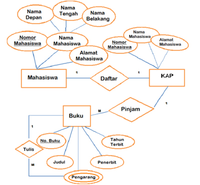 Contoh : Mahasiswa, Kartu Anggota Perpustakaan (KAP), dan Buku.