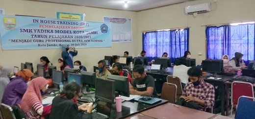 Marilah kita melihat realitas saat ini, pembelajaran yang terjadi pada masa pandemi COVID-19 adalah distance learning atau pembelajaran jarak jauh (PJJ). PJJ ini dilakukan baik melalui pembelajaran dalam jaringan (daring) atau pembelajaran di luar jaringan (luring). Dalam rangka kegiatan PJJ ini, SMK Yadika Kota Jambi melakukan pelatihan untuk guru-guru. Pelatihan ini dilaksanakan pada hari kamis 9 Juli 2020,bertempat di laboratorium TIK SMK Yadika Jambi. Materi-materi yang diberikan adalah bertema pembuatan soal dan kuis online,serta pembuatan kelas online dengan google classroom. Pelatihan ini diikuti oleh 48 guru SMK yg dibagi ke dalam 2 kelas pembelajaran.